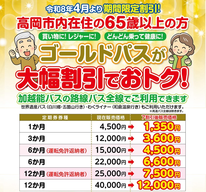 高岡市内在住の方は「ゴールドパス」が大幅割引きになります!