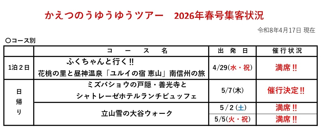 「ミズバショウの戸隠善光寺とシャトレーゼホテルランチビュッフェ」