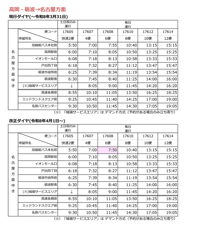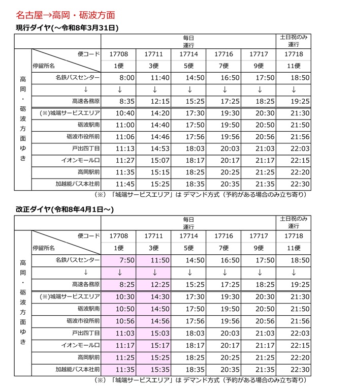 ●令和8年1月21日~令和8年2月28日の間、「城端SA」バス停を休止致します。